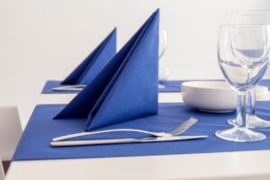 Guardanapos bordados ou impressos com monograma, deixando a recepção mais sofisticada e personalizada.